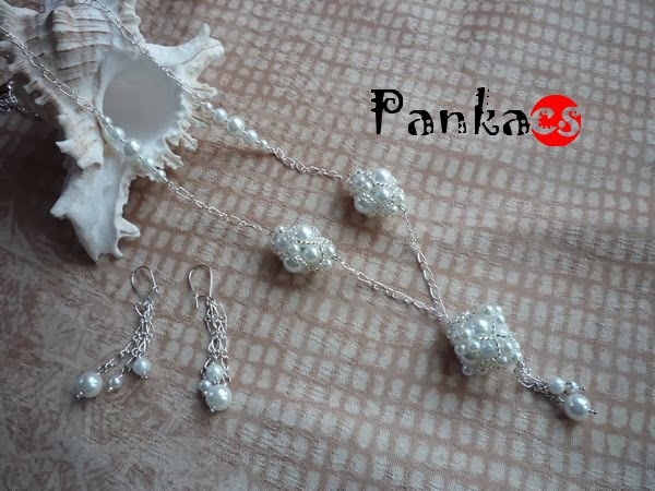 Mást terveztem ezekből a gyöngyökből: egy asszimetrikus nyakéket. De közben elkeltek a baglyaim, Friderika és Albínó, így végül egy újabb bagoly született, újabb formában. És ez annyira szép és kiegyensúlyozott lett, hogy a fülbevaló és a gyűrű is elkészültek mellé "őrnek".